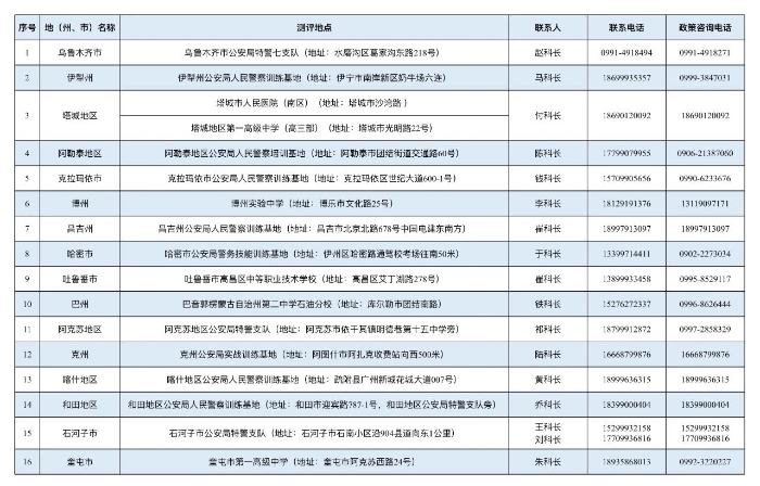 新疆2025年公安普通高等院校公安专业面试、体检和体能测评点地址及政策咨询热线