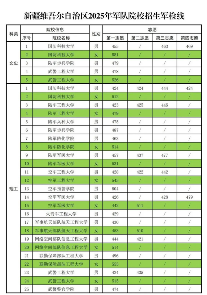 根据教育部,军委政治工作部、训练管理部《关于印发〈2025年军队院校招收普通高中毕业生计划〉的通知》(军训〔2025〕105号)文件规定,新疆军区招生工作办公室结合报考军队院校考生相关情况,按比例划定军队院校在疆招收普通高中毕业生面试体检控制分数线(以下简称“军检线”,详见附件)。上线考生名单由各地(州、市)教育考试机构通知至考生所在学校。