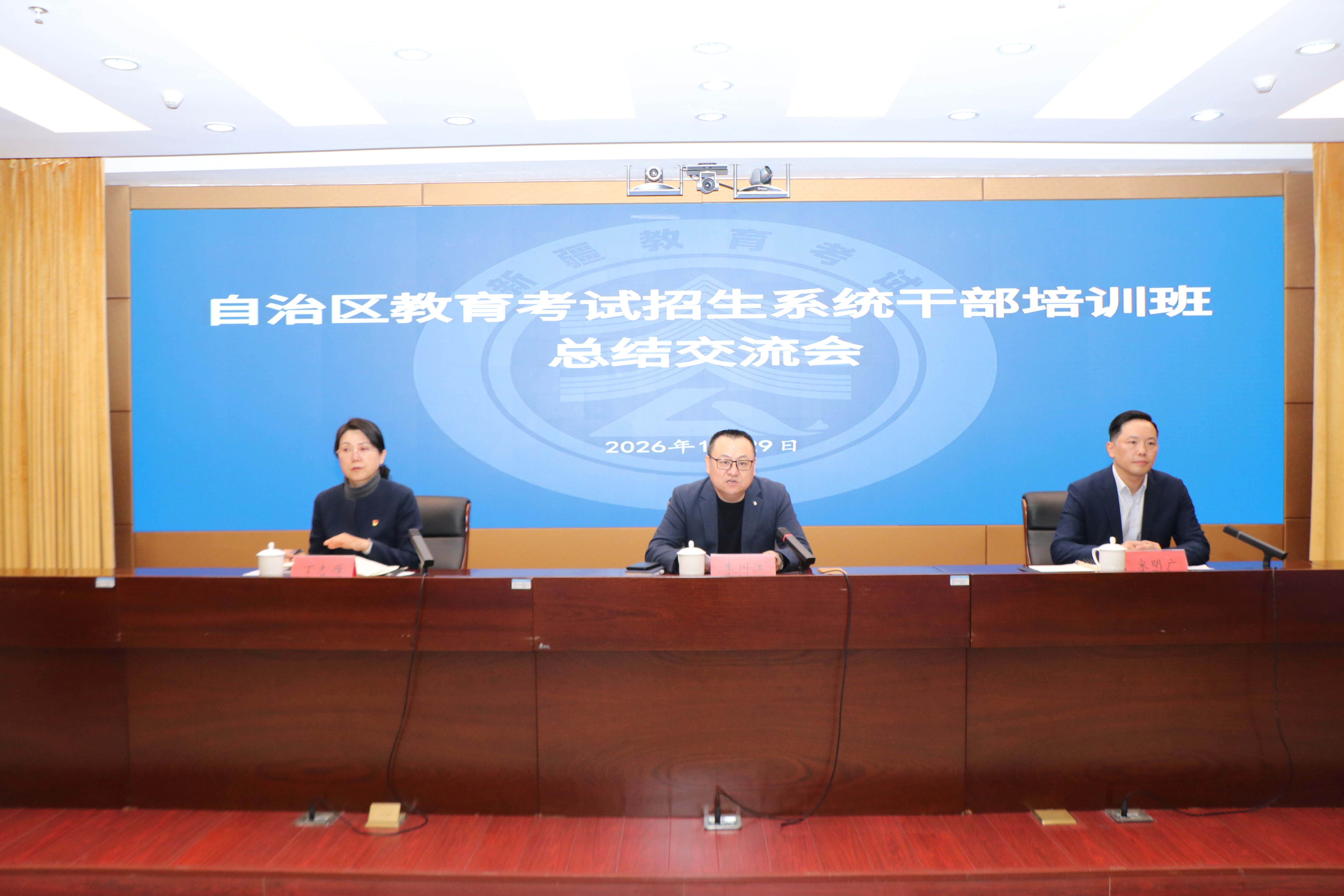 2025年9月和2026年1月,自治区教育考试院分别在全国干部教育培训浙江大学基地、北京师范大学(珠海校区)基地举办了两期自治区教育考试招生系统干部培训班,来自各地(州、市)教育考试机构、各有关高校和自治区教育考试院的106名干部参加了培训。为总结培训班学习成效,进一步凝心聚力,把培训收获转化为推动教育考试招生工作高质量发展的实际成效,2026年1月29日,自治区教育考试院召开自治区教育考试招生系统干部培训班总结交流会。自治区教育考试院党委领导班子成员、教育考试院全体干部职工参加会议。